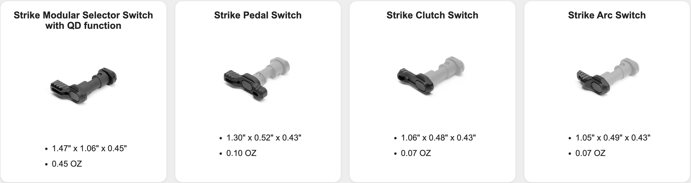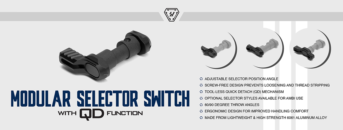 This is the Strike Quick Detach Modular Selector Switch for AR-15. With a 60/90/60 degree throw angle, users can now quickly swap out Selector Switches based on their preference and need. With the new QD Modular Selector Switch also comes an adjustable switch angle. The selector/switch has three holes to select from — each with ± 25° between each hole for micro adjustment. There are also optional switches that users can choose from including a Pedal, Clutch, and Arc design to pair with their new QD Modular Selector Switch to have an Ambi solution. Note: Selector barrel features 60/90 angles. Levers allow 0°, ±25° micro-adjustments. Strike Industries recommends that all gun-smithing and instillations be performed by a certified professional gunsmith. |